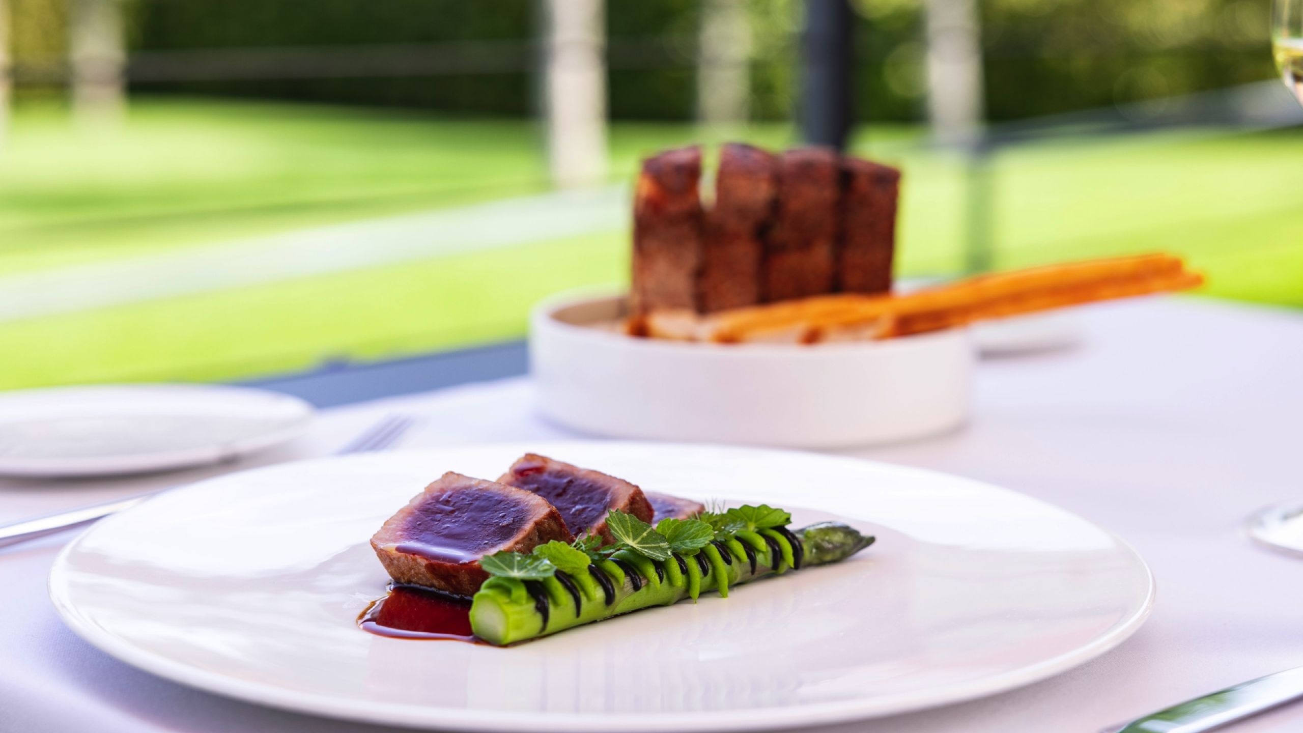 La grande terrazza del Ristorante Olio offre agli ospiti un’esperienza fatta di sapori eccezionali e spazi immersi nel verde, nell’arte contemporanea e nel fascino delle vetture d’epoca.