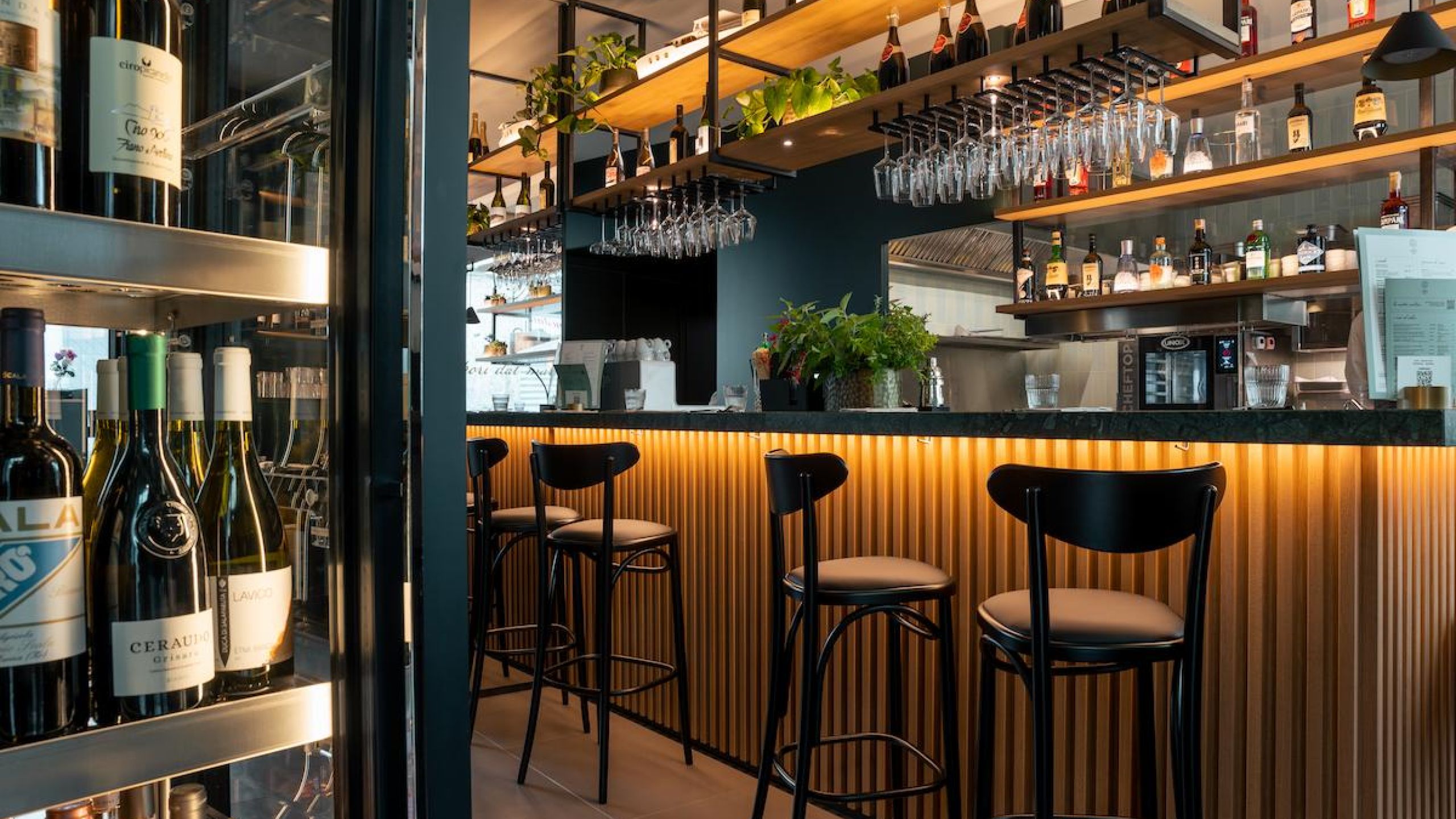 Gli ambienti di Olio Fish Bar si snodano con perfetta cura dei dettagli, come in tutti i progetti firmati Spazio The Box.